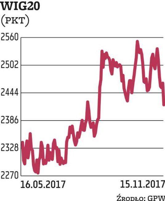 Przez cały dzień niedźwiedziom sukcesywnie udawało się powiększać swoją przewagę. Ostatecznie indeks grupujący 20 największych krajowych spółek stracił 1,8 proc. i zatrzymał się na poziomie 2418 pkt.