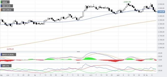 Sytuacja mWIG40 wyraźnie się w poniedziałek pogorszyła, głównie za sprawą spadku kursu akcji CD Projektu, a więc głównego udziałowca indeksu, o 8,1 proc. Dla wskaźnika kluczowy na dziś jest poziom 4800 pkt, a więc wsparcie wyznaczone przez lokalne dołki z wakacyjnego okresu. Jego pokonanie może dać sygnał do zejścia niżej o kolejne 100-140 pkt.