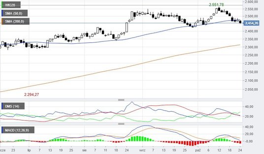 Niedźwiedzie poczynają sobie dziś coraz lepiej. Na półmetku wtorkowej sesji 60 proc. spółek notowało spadek kursu akcji i aż 26 firm wyznaczyło co najmniej roczne minimum cenowe (w tym m. in. Sfinks, Forte, Trakcja, Amica i Neuca). Główne indeksy były natomiast wyraźnie pod kreską. Najsłabszy sWIG80 spadał o 1,4 proc. do 14 080 pkt, wyznaczając w tym miejscu nowy dołek trendu spadkowego. Wszystkie 80 spółek było pod kreską. Najwięcej, bo ponad 5 proc., traciły papiery Selvity, PHN, Torpolu, GetBack oraz Arctic Paper. Niewiele lepiej wyglądał portfel średnich firm. Indeks mWIG40 spadał o 1,1 proc. do 4742 pkt, a w jego składzie na plusie były tylko Kruk, GTC, Apator i Enea. WIG20 wygląda na tym tle najlepiej, ale spadek do 2453 pkt oznacza, że ruchome wsparcie w postaci 50-sesyjnej średniej kroczącej zaczyna pękać. Krótkoterminowym celem niedźwiedzi może być poziom wsparcia 2420 pkt, gdzie nakładają się lokalne dołki i szczyty z ostatnich kilku miesięcy. Największym ciężarem w portfelu blue chips były przed południem banki: Pekao i Alior.