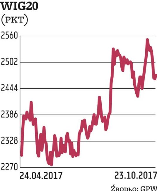 Z technicznego punktu widzenia najbliższym wsparciem na WIG20 jest piątkowe minimum na 2457 pkt. Następnie byki powinny się uaktywniać w pobliżu 2425 pkt, gdzie znajduje się lokalny dołek z 28 września i przebiega połowa dużej białej świecy z 24 sierpnia. Opór stanowi natomiast maksimum hossy z 12 października na 2566 pkt.