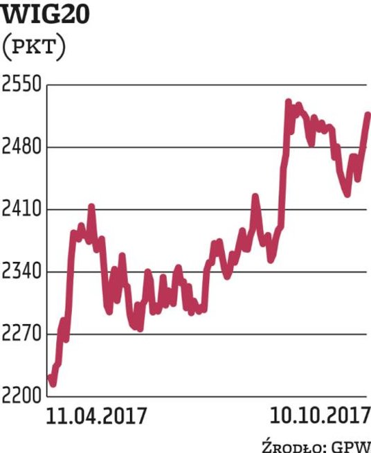 Wzrost na WIG20 to zasługa w głównej mierze sektora bankowego, który w ostatnich tygodniach raczej ciążył indeksowi największych spółek. Optymizm inwestorów wzbudziły informacje, że ustawa spreadowa zostanie znacząco odsunięta w czasie. Najmocniej zyskiwał mBank, który oprócz powyższego skutecznie się broni przed karą w wysokości 15 mln zł, jaką chciał na niego nałożyć UOKiK. Na koniec sesji kurs akcji spółki rósł o 3,48 proc., do 438,95 zł. Po 2,69 proc. zyskiwały BZ WBK oraz PKO BP. Świetnie wypadły jeszcze firmy petrochemiczne, czyli PKN Orlen i Lotos, których notowania zwyżkowały ponad 1 proc. Bycze zapędy znów wyhamowały spółki z sektora energetycznego. Najsłabiej wypadła Energa, której walory na koniec traciły blisko 2 proc. WIG energia zachowuje się marnie od kilku tygodni. W ciągu czterech ostatnich spadł już o prawie 7 proc.