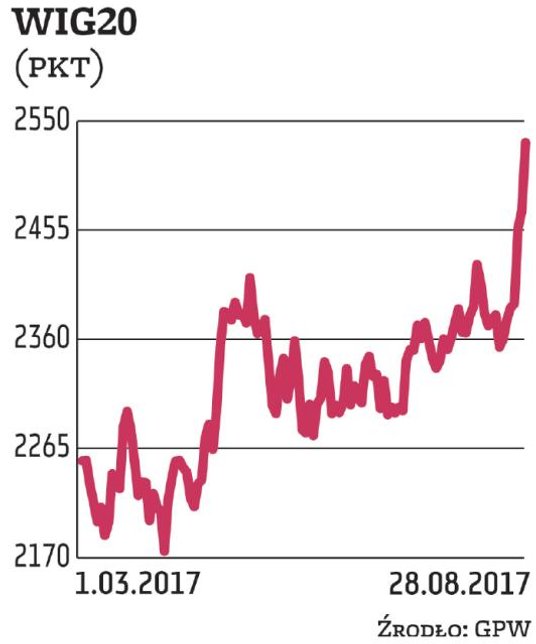 W rezultacie WIG20 zakończył sesję efektowną zwyżką o ponad 2,4 proc., pokonując po drodze z rozpędu psychologiczną barierę 2500 pkt. Tym samym wskaźnik ten znalazł się najwyżej od maja 2015 roku.