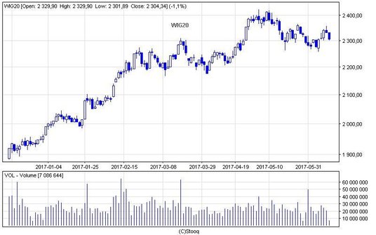 Statystyki dla spółek potwierdzają poniedziałkową przewagę podaży na GPW. 56 proc. emitentów notowało spadki, a 25 proc. zwyżki. Na rocznym maksimum znalazły się kursy akcji tylko trzech firm: Eurotel, Prima Moda i Toya, a w rocznym dołku siedmiu, m. in. Bioton, Krezus i Puławy. Pocieszające są dwa fakty. Po pierwsze zniżkom towarzyszą niewielkie obroty: na półmetku tylko 322 mln zł. Po drugie: kolor czerwony dominował dziś przed południem na większości zachodnich parkietów. DAX tracił 0,9 proc., a CAC40 1 proc. Czekamy na otwarcie sesji w Stanach Zjednoczonych, które może wnieść nieco więcej życia w dzisiejszy handel.