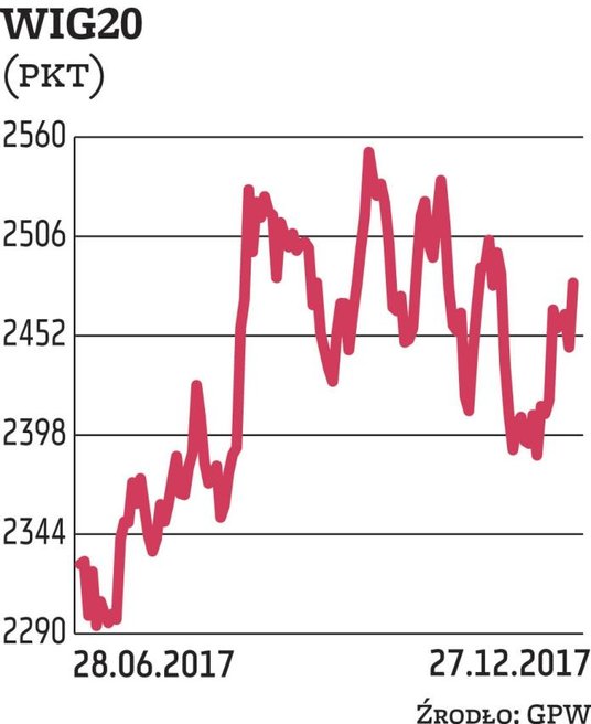 Na szerokim rynku gwiazdą sesji była firma Esotiq & Henderson. Na walnym zgromadzeniu 19 stycznia akcjonariusze zdecydują o skupie nie więcej niż 20 proc. wszystkich akcji spółki po cenie nie wyższej niż 45 zł za sztukę, w celu umorzenia. W ciągu dnia walory drożały nawet o ponad 10 proc., do 26,3 zł. W dużo gorszych nastrojach byli posiadacze papierów NanoGroup. Biotechnologiczna spółka na warszawskim parkiecie zadebiutowała kilka dni temu. W ofercie publicznej walory były sprzedawane po 4,75 zł. W środę taniały nawet o blisko 27 proc., do 3 zł. Pod koniec dnia kilkanaście procent traciły też notowania Orco Property Group.