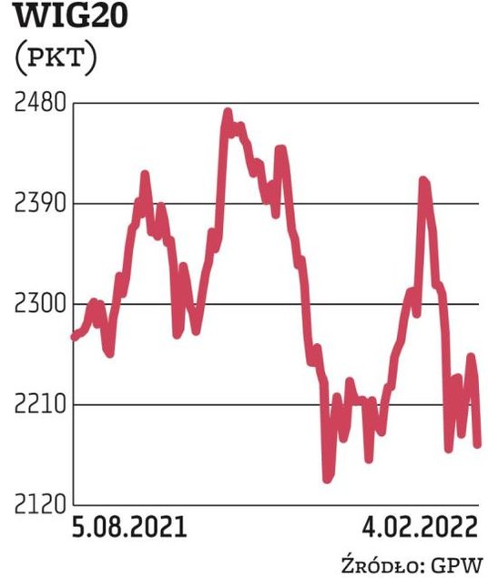Początek handlu dawał nadzieję na wygraną byków. Indeks otworzył się na plusie, choć zwyżka nie była zbyt duża i wynosiła 0,2 proc. Jednak niedźwiedzie zaczynały coraz mocniej dociskać i notowania mozolnie się osuwały. Po południu została przełamana bariera 2200 pkt. Później przez kilka godzin indeks poruszał się w wąskim zakresie punktowym, a wyprzedaż przyspieszyła w ostatnich minutach sesji. Ostatecznie WIG20 zamknął się na poziomie 2174 pkt, co oznacza spadek o 2,7 proc.