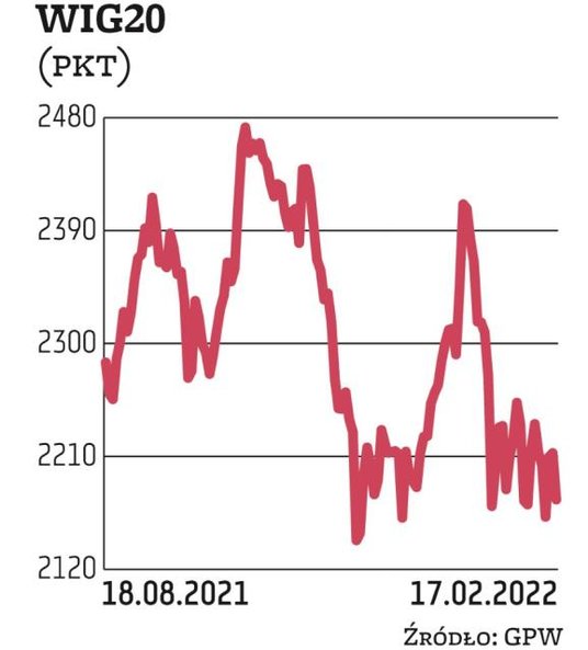 Początek czwartkowego handlu dawał nadzieję na optymistyczne zakończenie handlu. WIG20 otworzył się na plusie, jednak podaż szybko sprowadziła indeks pod kreskę. Następnie przez kilka godzin indeks poruszał się w wąskim zakresie punktowym. Po południu podaż zaczęła dociskać jeszcze mocniej. Obawy inwestorów znów budziła perspektywa wojny między Rosją a Ukrainą. W efekcie notowania WIG20 spadały nawet o około 2 proc., schodząc do 2168 pkt. Ostatecznie kara niedźwiedzi nie była tak surowca i indeks spadł o 1,7 proc. Na lekkim plusie dzień zakończyły tylko Dino, Asseco Poland i Cyfrowy Polsat.
