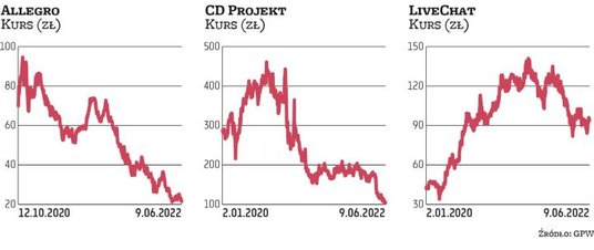 Podczas czwartkowej sesji WIG oscylował w okolicach środowego zamknięcia, czyli 56 tys. pkt. Od początku roku stracił 20 proc. Z kolei WIG20 spadł o 22 proc., do obecnych niespełna 1,8 tys. pkt. To właśnie z grona blue chips wywodzi się najwięcej spółek, których akcjami na krótko grają aktualnie zagraniczne fundusze. To m.in. CD Projekt, Allegro, Dino i CCC.