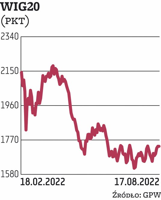 Ostatecznie WIG20 finiszował równe 3 proc. na minusie, czyli na poziomie niecałych 1683 pkt. Środowa sesja niewiele jednak zmieniła w technicznym obrazie indeksu. „Porażka byków uzupełnia się z wtorkowym zawahaniem na górnym ograniczeniu trendu bocznego 1745–1600 pkt i oznacza powrót do środka konsolidacji” – zauważył Adam Stańczak z DM BOŚ. Jego zdaniem znacząco wzrosły też szanse na dowiezienie układu do końca tygodnia i przeniesienie lipcowego trendu bocznego na trzeci tydzień sierpnia.