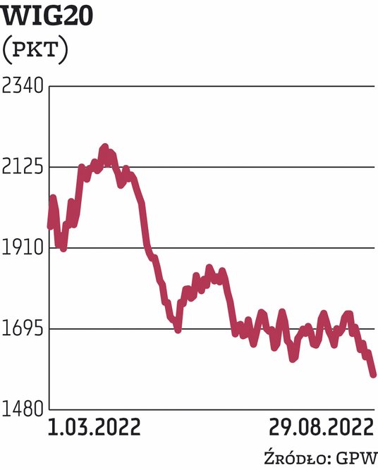 Dominacja sprzedających sprawiła, że WIG20 finiszował ponad 1,9 proc. pod kreską, a WIG stracił 1,6 proc., ustanawiając nowe tegoroczne dołki notowań. Licząc od początku tego roku, strata wskaźnika największych firm sięga już 31 proc., z kolei indeks szerokiego rynku zniżkował o ponad 26 proc. Inwestorzy handlujący w Warszawie poddali się nastrojom panującym na zagranicznych rynkach akcji, gdzie w poniedziałek przewaga sprzedających nie podlegała dyskusji. Inwestorzy w dalszym ciągu z dużą rezerwą podchodzą do akcji, obawiając się dalszych agresywnych podwyżek stóp procentowych w USA celem opanowania inflacji nawet kosztem wzrostu gospodarki. Do tego dochodzi też coraz bardziej realna perspektywa poważnego kryzysu energetycznego i recesji w Europie.