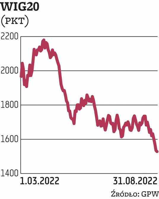 WIG20 tym samym wylądował na nowych tegorocznych minimach, a skala tegorocznej zniżki przekroczyła 30 proc. Do wskaźnika krajowych blue chips słusznie przylgnęło miano najgorszego indeksu na świecie w tym roku. W nieco szerszym horyzoncie WIG20 obecnie zmierza do dołka z jesieni 2020 r., tj. w okolice 1500 pkt, i zapewne w tym miejscu stoczy się kolejna bitwa między dwiema stronami handlu.