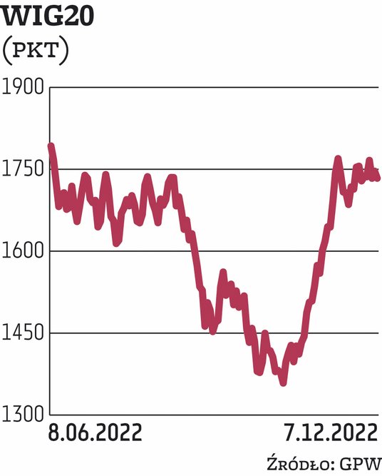 Po zniżkach na Wall Street, a następnie słabej formie azjatyckich indeksów również otwarcie handlu w Europie przebiegło w ponurych nastrojach. Inwestorzy podłamali się obawami o recesję gospodarczą w przyszłym roku. WIG20, podobnie jak większość europejskich indeksów, rozpoczął środową sesję na czerwono. Pod koniec pierwszej godziny zdołał wyjść nad kreskę, ale na krótko. Do wczesnego popołudnia WIG20 tracił kilka punktów względem zamknięcia z wtorku, zatem przewaga podaży nie była istotna. W ostatnich dniach popyt zdołał wykorzystać niską płynność na rynku (łącznie około 0,5 mld zł) i wyprowadził indeks dużych spółek powyżej poziomu odniesienia. Ostatecznie WIG20 zakończył więc sesję ze zwyżką, jednak o zaledwie 0,12 proc. Wśród dużych spółek najlepiej spisały się PGE, Allegro, CCC i Asseco Poland. Pod kreską finiszowały z kolei Kęty, CD Projekt, Kruk czy Pepco.