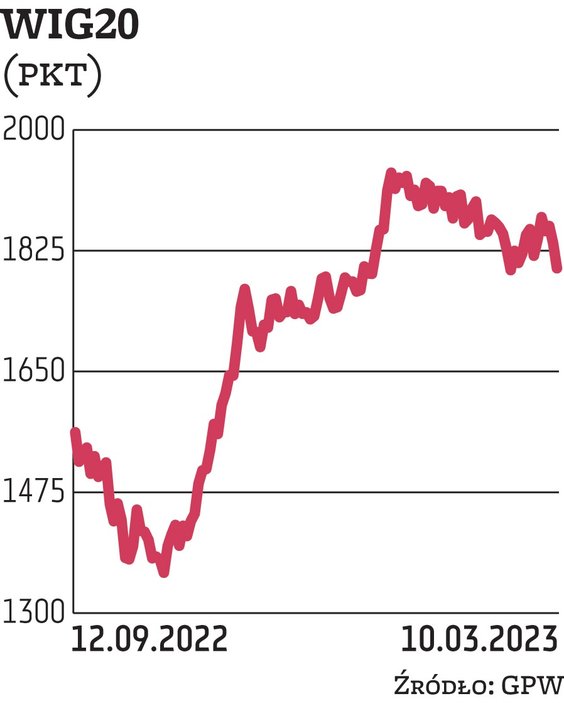 Zeszły tydzień na krajowym rynku akcji zapowiadała się całkiem obiecująco. W poniedziałek WIG20 wyprowadził rajd w kierunku 1880 pkt, zyskując pierwszego dnia tygodnia aż 1,7 proc. Dalej nie było już tak różowo. Następnego dnia indeks dużych spółek jeszcze raz zaatakował wspomniany pułap, jednak znów nieskutecznie. Pogorszenie nastrojów nastąpiło w drugiej połowie tygodnia. W czwartek WIG20 stracił około 20 pkt, lądując na koniec dnia nieco poniżej 1840 pkt, a w piątek otworzył się luką spadkową, zaczynając dzień na 1820 pkt. Jak się szybko okazało, pierwsze minuty handlu ustawiły wynik sesji ostatniego dnia tygodnia. WIG20 przez kolejne godziny oscylował wokół 1800 pkt, a na godzinę przed końcem handlu wylądował kilkanaście punktów poniżej wspomnianego okrągłego poziomu, co oznaczało spadek grubo ponad 2 proc. Zejście tak nisko nie było przypadkiem. Dokładnie w tym miejscu indeks wyznaczył dołek w drugiej połowie lutego. Cofając się nieco bardziej zauważymy, że z tych samych okolic WIG20 rozpoczynał ten rok. Od strony technicznej można zatem mówić o kolejnym ataku podaży na wsparcie, które trzeszczało kilka tygodni wcześniej. Warto dodać, że głównym winowajcą zniżek były banki, co obrazował około 3-proc. spadek WIG-banki.