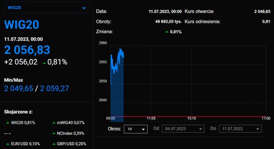 W pierwszej godzinie notowań WIG20 zyskiwał ponad 0,7 proc. i wraca tym samym powyżej 2050 pkt. Wzrosty chociaż nie aż tak mocne widać także w przypadku średnich i małych firm.