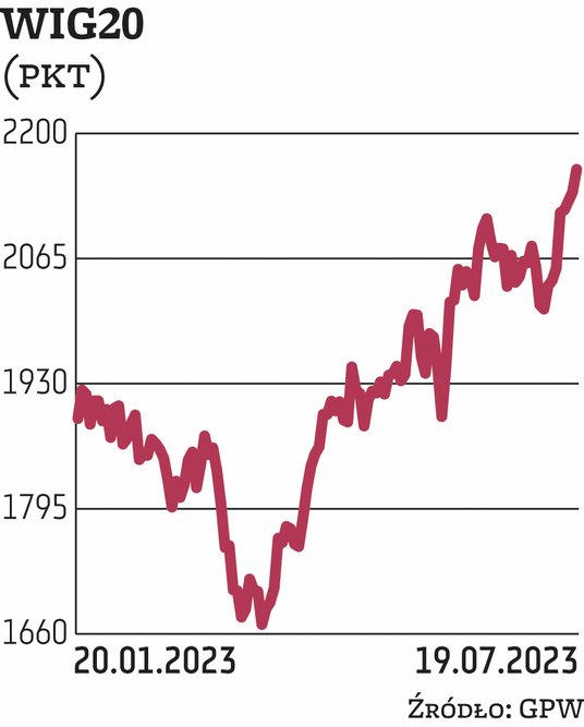 Od początku środowej sesji na GPW obserwowaliśmy zwyżki. WIG20 już pierwszą godzinę sesji kończył wzrostem o 0,4 proc. Jak się jednak szybko miało okazać, na wiele więcej nie było już stać popytu. Przed południem indeks dużych spółek zbliżył się do 2182 pkt i tu wyrysowało się dzienne maksimum. W kolejnych godzinach siły popytu i podaży się równoważyły. Na dwie godziny przed końcem sesji podaż zaatakowała, ściągając indeks dużych spółek nawet do poziomu zamknięcia z poprzedniego dnia. Atak był jednak dość kruchy, bo na finiszu kupujący zdołali odebrać to, co wcześniej należało do nich. Ostatecznie WIG20 zakończył dzień zwyżką o 0,48 proc., tj. na poziomie 2171 pkt. Giełdowe byki mają kilka powodów do zadowolenia. Po pierwsze, WIG20 zyskał po raz dziewiąty z rzędu. Po drugie zaś, ustanowił nowy w tym roku szczyt i powiększył tegoroczny dorobek do ponad 21 proc. Z drugiej strony także niedźwiedzie ugrały coś dla siebie. Nad środową świecą wyrysował się dość znaczny cień, obrazujący zamknięcie handlu sporo poniżej dziennych maksimów. W gronie krajowych blue chips najbardziej brylował Orlen z prawie 4-proc. zwyżką. Druga była Grupa Kęty, której akcje zyskały niewiele mniej. Niezdecydowanie inwestorów widać było w notowaniach banków. W czołówce dużych firm znalazł się Alior z 2,3-proc. wzrostem, ale PKO BP już kończył tuż pod kreską. Miało to wpływ na WIG-banki, który kończył dzień praktycznie w punkcie wyjścia.