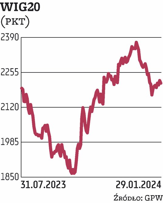 Pierwsza sesja tygodnia należała do sprzedających. WIG20 finiszował prawie 0,5 proc. pod kreską, utrzymując się powyżej 2200 pkt. Z kolei WIG zniżkował o ponad 0,4 proc. Krajowe wskaźniki podążyły śladem większości pozostałych europejskich rynków akcji, gdzie inwestorzy chętniej pozbywali się akcji, choć skala przeceny była ograniczona. Nastroje wskazywały, że wśród inwestorów panowała niepewność przed środową decyzją Fedu. Ma to związek z korektą oczekiwań związanych z rozpoczęciem obniżek stóp procentowych. Jeszcze do niedawna rynek był przekonany, że pierwsza obniżka wypadnie w marcu. Obecnie nie ma już takiej jednomyślności wśród inwestorów.