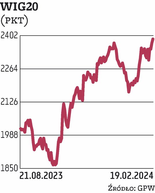 W Warszawie większość spółek z WIG20 kontynuowała pozytywny trend. Zwyżkom przewodziły walory LPP, które zakończyły sesję efektowną, ponad 4,8-proc. zwyżką. Z kolei solidne odbicie po zeszłotygodniowych spadkach zanotowały Dino i Allegro. Do zwyżek przyłączyły się również banki, co w przypadku mBanku i Santandera zaowocowało nowymi rekordami hossy. Natomiast na celowniku sprzedających znalazły się akcje spółek wydobywczych KGHM i JSW, w przypadku których inwestorzy najwyraźniej postanowili zrealizować zyski po bardzo udanym poprzednim tygodniu.