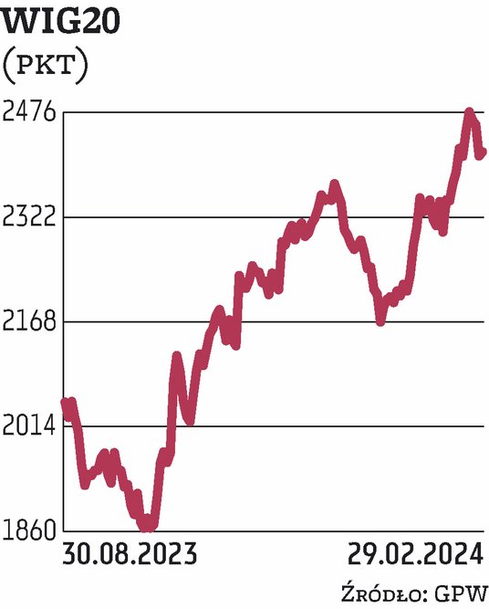 Po cięgach, jakie zebrały byki na GPW w środę, w czwartek chciały się szybko odegrać i zanegować korektę. Zapału starczyło jednak tylko na pierwsze kilkadziesiąt minut handlu. Poziom 2450 pkt, w pobliże którego WIG20 dotarł po pierwszej godzinie handlu, aktywował sprzedających. Tym razem popyt cofał się powoli, stopniowo. Druga część sesji była jednak wyraźnie słabsza od pierwszej. WIG20 był bliski zamknięcia niemal w punkcie wyjścia, ale ostatecznie zyskał 0,25 proc., lądując na koniec dnia na 2418 pkt. Można by więc uznać, że indeks dużych spółek wziął się do odrabiania strat ze środy, ale kupujący pozostawili po sobie w czwartek szerokie połacie spalonego terenu – nad skromnym białym korpusem przeważa długi cień. Taki układ świecowy sugeruje, że za nami tylko przystanek na drodze dalszej korekty. Los WIG20 może oczywiście odmienić nagła poprawa atmosfery na globalnych rynkach i wyjście na nowe rekordy, co wcale nie jest wykluczone.