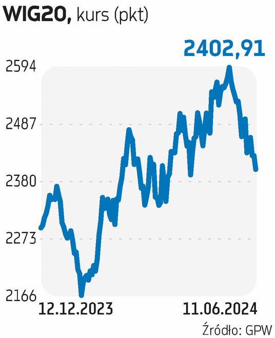 Jeszcze wczesnym przedpołudniem WIG20 zaświecił na czerwono i pozostał pod kreską do końca dnia. Blisko półmetka sesji indeks dużych spółek tracił około 1 proc. i z takim też wynikiem finiszował. Popyt bronił się w okolicach 2400 pkt, czyli podobnie jak w pierwszym dniu tygodnia. Na ile to wsparcie pozostanie trwałe? WIG20 porusza się od około miesiąca w kanale spadkowym, a wszelkie próby zbliżenia się do górnego ograniczenia tej formacji są szybko niwelowane. Co więcej, pogorszenie atmosfery obserwujemy także na rynkach globalnych. W Europie drugi dzień z rzędu na szarym końcu tabeli plasował się francuski CAC 40, tym razem ze spadkiem o 1,3 proc. Niemiecki DAX tracił z kolei 0,66 proc.