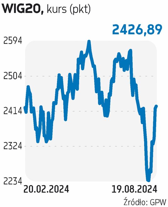WIG20 dotarł nawet do 2437 pkt, a kontrakty na indeks dużych spółek wzbiły się do 2417 pkt. Gorzej było jednak po starcie sesji w USA. Chwilowe zawahanie sprawiło, że WIG20 wrócił do poziomu zamknięcia. W końcowych minutach popyt zdołał jednak zapisać niecałe 6 pkt dla siebie, co oznaczało 0,24-proc. zwyżkę indeksu krajowych blue chips.