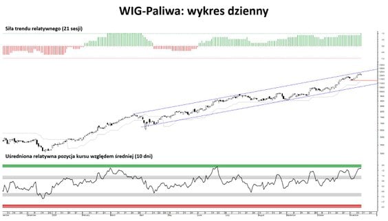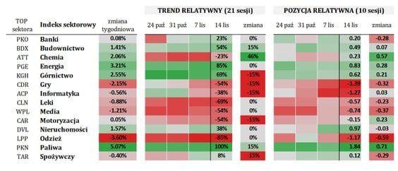 Warto też zwrócić uwagę na chemię. Kurs indeksu wzrósł w skali tygodnia o nieco ponad 2 proc., natomiast siła trendu relatywnego zwiększyła się aż o 46 p.p. Co prawda wskaźnik ten nadal pozostaje ujemny, ale może to być zapowiedź silniejszego odbicia. Zarówno w wartościach relatywnych, jak i bezwzględnych.