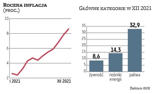 W ostatnim miesiącu 2021 r. inflacja CPI wystrzeliła do 8,6 proc. – podał Główny Urząd Statystyczny w tzw. szybkim szacunku. To o 0,3 pkt proc. więcej niż średnia oczekiwań analityków rynkowych i 0,8 pkt proc. więcej niż roczny wzrost cen w listopadzie.
