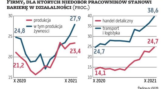 Sieci handlowe ostrożnie zwiększają sezonowe zatrudnienie, tym bardziej że o kandydatów do pracy jest trudno, a ich niedobór zwiększa presję na płace. Jak wynika z najnowszych danych GUS, w październiku tego roku już co czwarta firma z sektora handlu detalicznego wskazywała niedobór pracowników jako barierę w swej działalności. To o trzy czwarte więcej niż rok wcześniej, gdy mówiła o tym co siódma. Przedstawiciele sieci handlowych przyznają, że trudno im wygrać w konkurencji płacowej z e-commerce i logistyką, gdzie firmy przebijają się stawkami. Nic dziwnego, skoro w sektorze TSL dla prawie czterech na dziesięć firm barierą w działalności jest niedobór wykwalifikowanych pracowników. Stąd też inwestycje w automatyzację; coraz większej liczbie sieci handlowych, na czele z liderem handlu detalicznego Biedronką, problem niedoboru kasjerów pomagają rozwiązać automatyczne kasy samoobsługowe.