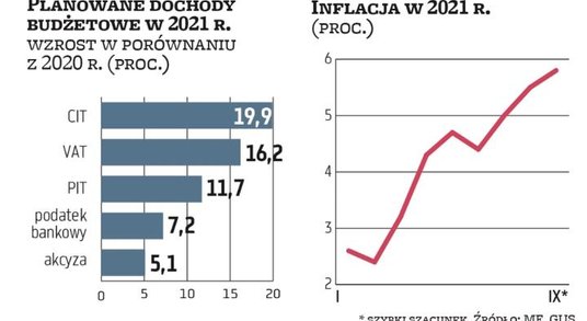 Podwyższona inflacja, która w Polsce sięga już prawie 6 proc., oznacza też większą presję płacową, co przekłada się z jednej strony na przyspieszone podwyżki naszych wynagrodzeń, ale z drugiej również na wyższe PIT i składki na ubezpieczenia społeczne liczone od tych wynagrodzeń. Tu można szacować, że budżet „zarobi" na tym nawet 1–2 mld zł więcej.
