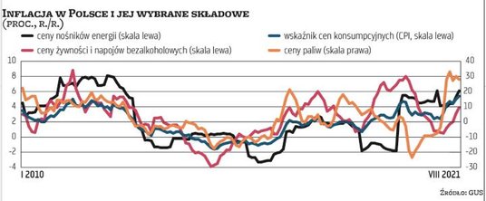 Ceny towarów i usług konsumpcyjnych wzrosły w sierpniu o 5,4 proc. rok do roku, najbardziej od czerwca 2001 r., po zwyżce o 5 proc. w lipcu – oszacował wstępnie GUS. Pocieszać można się tym, że wyższej inflacji w najbliższym czasie już raczej nie zobaczymy. Ale też ubywa powodów, aby wierzyć, że w dalszej perspektywie inflacja znacząco spadnie. Inne wtorkowe dane GUS pokazały, że w Polsce trwa boom konsumpcyjny, któremu nie towarzyszy szybki wzrost inwestycji. To może stworzyć długotrwałą presję na wzrost cen. Większość ekonomistów wątpi, aby w 2022 r. inflacja spadła poniżej 3,5 proc., czyli górnej granicy pasma dopuszczalnych odchyleń od celu NBP, co zapowiadały jeszcze lipcowe prognozy tej instytucji.