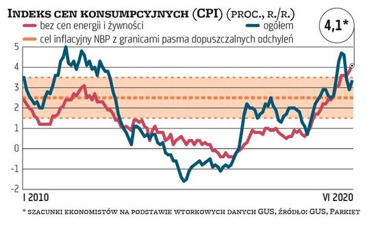 Z wstępnych i niepełnych danych GUS wynika jednak, że źródłem niespodzianki była przede wszystkim tzw. inflacja bazowa, nieobejmująca cen energii i żywności, która – jak szacują ekonomiści – sięgnęła w czerwcu 4–4,1 proc. rok do roku. Tak wysoka nie była od 20 lat. W maju inflacja bazowa wynosiła 3,8 proc. rok do roku, a uczestnicy ankiety „Parkietu" przeciętnie zakładali, że w czerwcu zmalała do 3,5 proc.