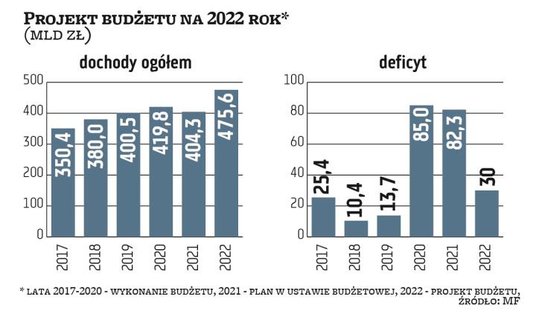 Wydatki budżetowe mają z kolei wynieść w 2022 r. 505,6 mld zł (czyli o 18,8 mld zł więcej niż w 2021 r.). Jak podkreśla resort finansów, zabezpieczy to finansowanie i kontynuowanych działań rządu, i nowych rozwiązań. W budżecie na pewno znajdą się więc pieniądze na programy społeczne. takie jak 500+ czy 300 zł na wyprawkę szkolną, a świadczenia emerytalne mają zostać zwaloryzowane o wskaźnik 104,89.