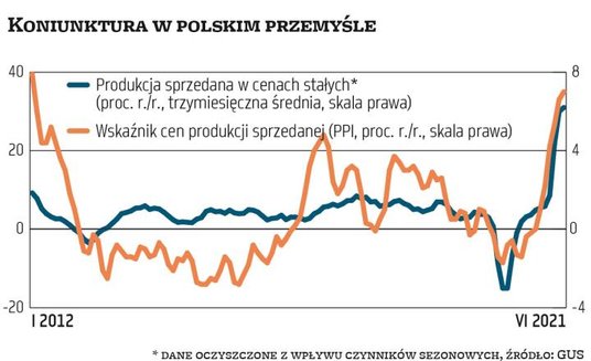 Pomijając to statystyczne zaburzenie, polski przemysł jest bez wątpienia w dobrej kondycji. Widać jednak pewne oznaki hamowania. Oczyszczona z wpływu czynników sezonowych produkcja była w czerwcu tylko o 0,2 proc. wyższa niż w maju, gdy z kolei wzrosła o 0,8 proc. Nie licząc kwietnia br., gdy tak mierzona produkcja zmalała, czerwcowy wynik jest najsłabszy od kwietnia 2020 r.