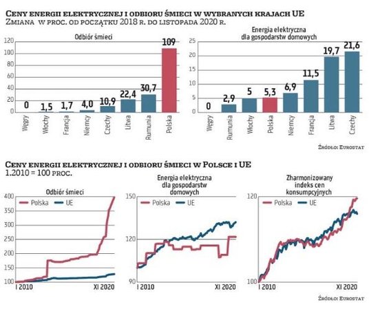 Otóż nie jest to według niego konsekwencja szybkiego w ostatnich latach wzrostu płac, jak twierdzi większość ekonomistów, tylko podwyżek cen energii i odbioru śmieci. Oba te koła zamachowe inflacji działają bez żadnego związku z koniunkturą w polskiej gospodarce, są więc też poza polem oddziaływania krajowej polityki pieniężnej. Pierwsze z nich w ruch wprawiły „nieszczęsne regulacje unijne dotyczące ekologii i źródeł energii", drugie zaś zagraniczne koncerny działające na niekonkurencyjnym rynku.