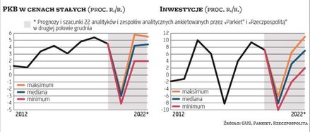 Największą niewiadomą, która jest zarazem istotnym źródłem różnić w makroekonomicznych scenariuszach dla Polski, są inwestycje. Inaczej niż w przypadku konsumpcji część ekonomistów liczy się nawet z ich ponowną zniżką, po załamaniu o 7–8 proc. w 2020 r. Przeciętnie ankietowani przez nas ekonomiści oceniają, że nakłady brutto na środki trwałe w polskiej gospodarce zwiększą się w 2021 r. o 3,2 proc. Ale nawet to oznaczałoby, że realna wartość tych nakładów pozostanie wyraźnie mniejsza niż w 2019 r. Jak tłumaczy Grzegorz Maliszewski, główny ekonomista Banku Millennium, przedsiębiorstwa w ankiecie NBP jako główną barierę dla rozwoju od początku pandemii wskazują niepewność. Ta zaś szybko nie ustąpi. – Skłonność firm do inwestycji w maszyny i urządzenia będzie też ograniczana przez obniżone wykorzystanie mocy wytwórczych. Według szacunków NBP wykorzystanie mocy wytwórczych jest obecnie najniższe od blisko czterech lat. Oznacza to, że odbudowujący się popyt firmy będą mogły zaspokoić przy wykorzystaniu obecnego majątku produkcyjnego – dodaje Maliszewski.