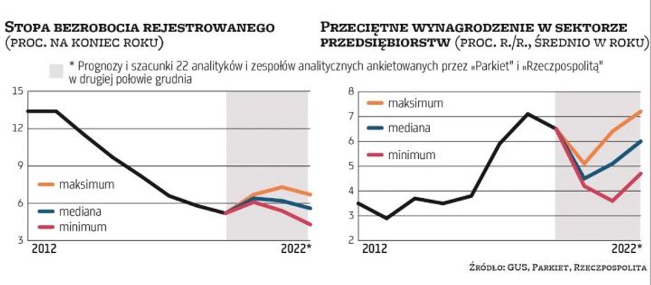Scenariusz BOŚ zakłada, że stopa bezrobocia rejestrowanego na koniec 2021 r. sięgnie 6,9 proc., podczas gdy 2020 r. zakończyła – jak przeciętnie szacują ekonomiści – na poziomie 6,4 proc. Większość uczestników noworocznej ankiety „Parkietu" i „Rzeczpospolitej" oczekuje jednak stabilizacji tego wskaźnika, a nawet spadku. Optymiści twierdzą, że ten rok stopa bezrobocia zakończy poniżej 5,5 proc., co oznaczałoby powrót do poziomu sprzed pandemii. Co więcej, ekonomiści przeciętnie oczekują, że wzrost wynagrodzeń, który nie ustał nawet w nadzwyczajnym 2020 r., w 2021 r. nieco przyspieszy (w sektorze przedsiębiorstw, obejmującym firmy z co najmniej dziesięcioma pracownikami, płace mają rosnąć średnio w tempie 5,1 proc. rocznie, w porównaniu z 4,9 proc. w 2020 r.). Przyczyni się do tego podwyżka płacy minimalnej niemal o 8 proc. W takich okolicznościach nawet w razie niewielkiego spadku zatrudnienia dochody Polaków z pracy mogą wzrosnąć, zachęcając do konsumpcji.
