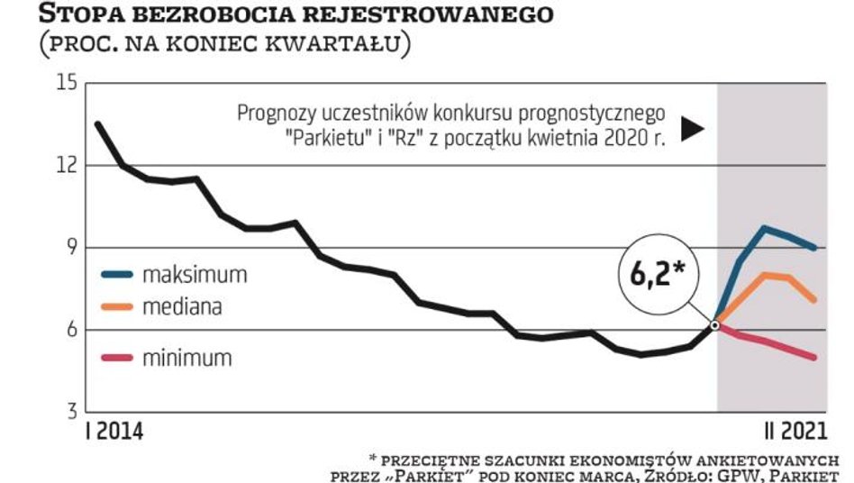 Rządowe tarcze antykryzysowe wyraźnie wpłynęły na to, jak ekonomiści postrzegają perspektywy rynku pracy. Na przełomie marca i kwietnia nie brakowało prognoz zwiastujących wzrost stopy bezrobocia rejestrowanego w tym roku do dwucyfrowego poziomu, w okolice 12 proc. Dziś nawet najwięksi pesymiści sądzą, że wskaźnik ten utrzyma się poniżej 10 proc. Przeciętnie oceniają, że szczyt osiągnie na koniec br., gdy wyniesie 8 proc.