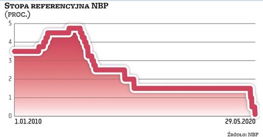 Załamanie aktywności w polskiej i globalnej gospodarce grozi spadkiem inflacji poniżej celu NBP. Aby temu zapobiec, Rada Polityki Pieniężnej zdecydowała się na kolejną obniżkę stóp procentowych. Stopę referencyjną NBP obniżyła o 0,4 pkt proc., do 0,1 proc. Od początku kryzysu wywołanego przez pandemię Covid-19 obcięła ją już trzy razy, łącznie o 1,4 pkt proc.