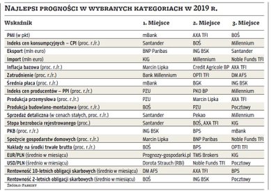 Publikowane w 2019 r. wskaźniki makroekonomiczne i rynkowe najlepiej prognozował zespół BOŚ. Wygrał trzeci raz z rzędu, wyprzedzając ekonomistów z Santandera i Pekao.
