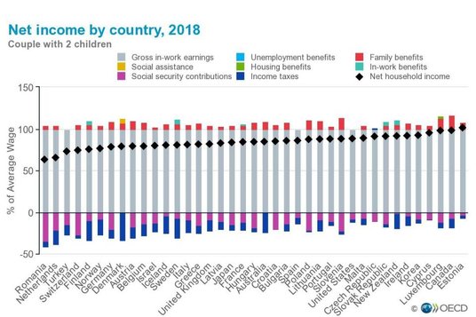 Stopa podatku dochodowego netto, tzn. po uwzględnieniu wszelkich ulg i transferów socjalnych, dla statystycznej polskiej rodziny z dwójką dzieci jest ujemna, podczas gdy średnio w krajach z Organizacji Współpracy Gospodarczej i Rozwoju (OECD) wynosi blisko 15 proc.