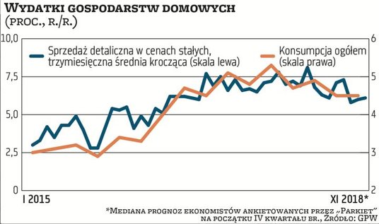 – Piątkowe dane potwierdzają dobrą wciąż koniunkturę w handlu detalicznym, czemu sprzyja sytuacja na rynku pracy, rosnące dochody i korzystne nastroje gospodarstw domowych – skomentował Andrzej Kamiński, ekonomista z banku Millennium. – Silne wzrosty sprzedaży dóbr trwałego użytku wskazują na nadal wysoką skłonność do konsumpcji gospodarstw domowych – dodał.