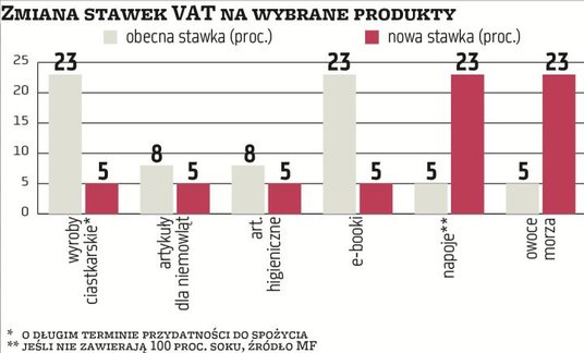 W sklepach powinny także spaść ceny owoców tropikalnych i cytrusowych, pistacji, migdałów i kokosów, zup, bulionów, żywności homogenizowanej i dietetycznej. Obecnie przy ich zakupie trzeba płacić 8 proc. MF uznało je jednak za podstawowe produkty spożywcze i proponuje 5-proc. stawkę.