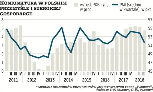 Ankietowani przez firmę IHS Markit menedżerowie odpowiadają m.in. na pytania o to, jak zmieniły się w ich firmach w porównaniu z poprzednim miesiącem: produkcja, wartość zamówień, zatrudnienie, zaległości produkcyjne itp. We wrześniu polskie firmy przemysłowe zgłosiły pierwszy od niemal dwóch lat spadek wartości nowych zamówień. Wartość zamówień zagranicznych zmalała przy tym najbardziej od czterech lat. To sugeruje, że polski przemysł odczuwa skutki spowolnienia w tym sektorze w strefie euro.