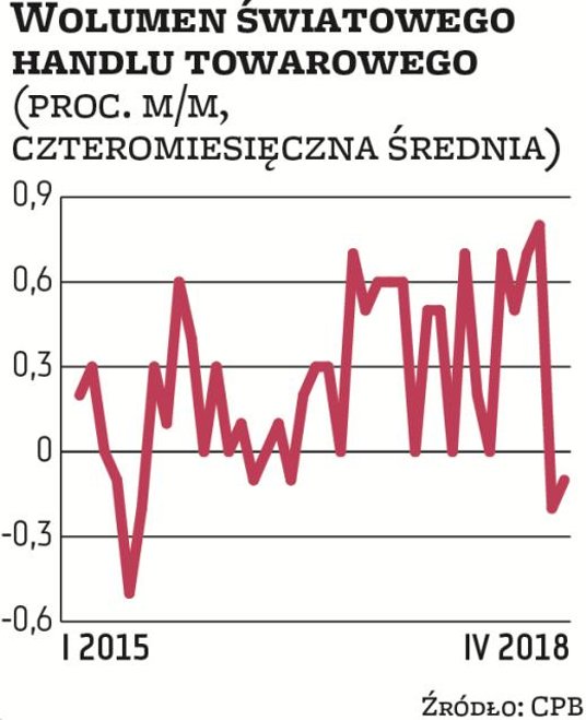 Dane CPB dają mocno opóźniony obraz koniunktury w handlu. Od kwietnia wiele mogło się zmienić. Globalny PMI w sektorze przemysłowym sugeruje, że wzrost wartości nowych zamówień eksportowych wciąż hamuje i w czerwcu był najwolniejszy od ponad roku. – Opierając się na historycznych zależnościach między składową PMI dotyczącą nowych zamówień eksportowych a wolumenem handlu, wzrost tego drugiego spadł w czerwcu poniżej 3 proc. rok do roku. Tak niski nie był od czasu, gdy Donald Trump wygrał klucze do Białego Domu – wyliczył ekonomista Capital Economics.