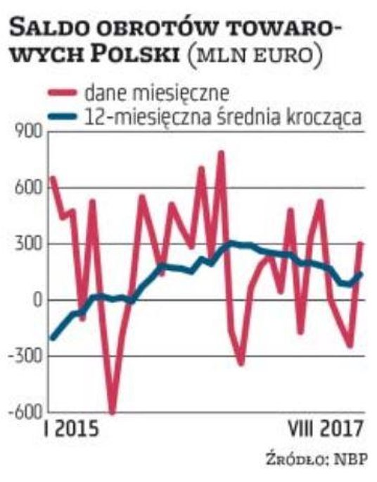Z opublikowanych w poniedziałek przez NBP danych wynika jednak, że po ośmiu miesiącach w bilansie handlowym wciąż mieliśmy nadwyżkę w wysokości ponad 1 mld euro.