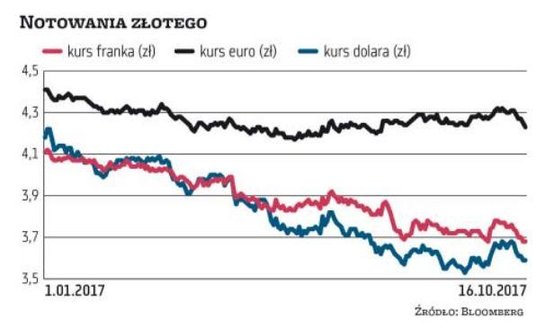 Ekonomiści Banku Ochrony Środowiska tłumaczą, że w minionym tygodniu zmniejszyły się obawy związane z referendum niepodległościowym w Katalonii. To pozytywnie wpłynęło na apetyt inwestorów na ryzyko, podobnie jak korzystne dane z globalnej gospodarki oraz niższy od oczekiwań odczyt inflacji w USA. Ten ostatni został przez inwestorów zinterpretowany jako sygnał, że tempo normalizacji polityki pieniężnej przez Fed będzie wolniejsze.