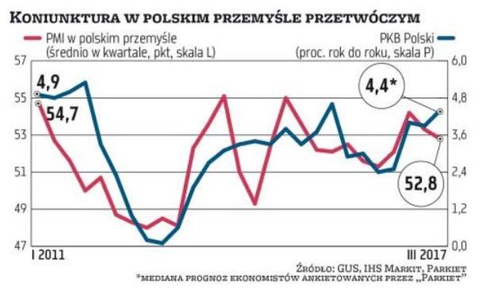 Każdy odczyt PMI powyżej 50 pkt oznacza, że więcej firm dostrzega poprawę koniunktury w porównaniu z poprzednim miesiącem niż jej pogorszenie. Dystans od tej granicy stanowi więc miarę tempa rozwoju przemysłu przetwórczego. We wrześniu było ono najszybsze od kwietnia. W całym III kwartale PMI wynosił średnio 52,8 pkt, nieco mniej niż w I i II kwartale (odpowiednio 54,2 i 53,3 pkt).