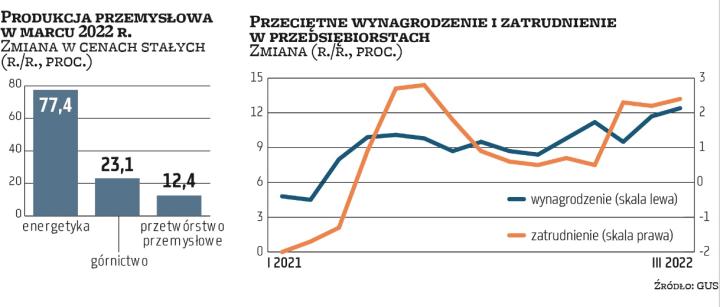 Za to niewątpliwie konflikt zbrojny za naszą wschodnią granicą odbija swoje piętno na poziomie cen w Polsce. Z czwartkowych danych GUS płyną niepokojące informacje na temat inflacji cen producenckich, która w marcu wyniosła aż 20 proc. wobec 16,1 proc. w lutym (po korekcie). Ceny były wyższe niż przed rokiem we wszystkich sekcjach przemysłu, największy zaś wzrost odnotowano w branży energetycznej – aż o 37,3 proc., oraz w branży górniczej – o 24,2 proc. W przetwórstwie przemysłowym też widać porządny wzrost– o 17,5 proc. (w tym paliw – o 89,4 proc., metali – o 33,5 proc., czy chemikaliów i wyrobów chemicznych – o 27,3 proc.