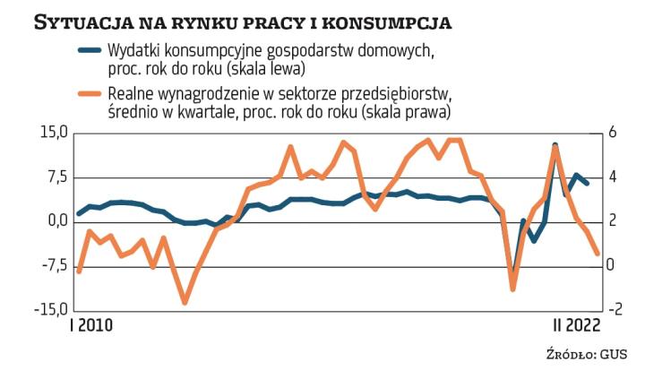Także dziś spadek realnych (skorygowanych o inflację) wynagrodzeń ekonomiści postrzegają jako zwiastun spowolnienia gospodarczego. – Realny poziom wynagrodzeń będzie naszym zdaniem kontynuował spadek, co przełoży się na obniżenie dynamiki konsumpcji oraz spowolnienie wzrostu – ocenia Karol Pogorzelski, ekonomista z banku Pekao.