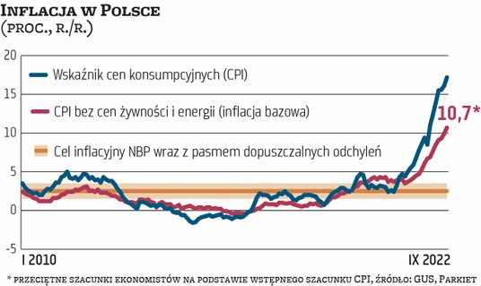 Te oczekiwania były zresztą formułowane, jeszcze zanim w piątek GUS opublikował wstępny szacunek inflacji we wrześniu. Ten zaś pokazał, że wskaźnik cen konsumpcyjnych podskoczył o 17,2 proc. rok do roku, po 16,1 proc. w sierpniu, zdecydowanie bardziej, niż oczekiwali ekonomiści. To, a także zdecydowanie osłabienie złotego pod koniec września, czyniło 12. z rzędu podwyżkę stóp niemal pewną. Prezes NBP Adam Glapiński sygnalizował wprawdzie, że stabilizacja stóp w październiku jest równie prawdopodobna co ich niewielka podwyżka, ale też zakładał, że inflacja nie będzie już istotnie przyspieszała. Wcześniej (np. w lipcu, przed wakacyjną przerwą w posiedzeniach Rady) deklarował zaś, że jeśli wbrew prognozom inflacja będzie dalej przyspieszała, RPP będzie nadal podnosić stopy.