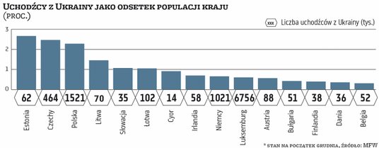 Jak szacuje Międzynarodowy Fundusz Walutowy, po agresji Rosji z Ukrainy wyjechało niemal 8 mln osób. W większości znalazły schronienie w Unii Europejskiej. Nominalnie najwięcej – ponad 1,5 mln – uchodźców przyjęła Polska, ale biorąc pod uwagę przyrost populacji, który wynika z napływu uchodźców, nieznacznie wyprzedzają nas pod tym względem Estonia i Czechy. W każdym z tych trzech państw liczba ludności zwiększyła się od wybuchu wojny w Ukrainie co najmniej 4 proc. Na krótką metę oznacza to przede wszystkim spore wydatki.