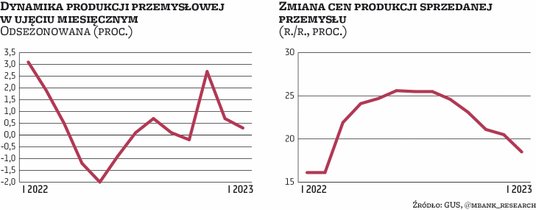 Według wstępnych danych w styczniu w ujęciu rocznym wzrost produkcji sprzedanej (w cenach stałych) odnotowano w 21 z 34 działów przemysłu, m.in. w produkcji urządzeń elektrycznych o 31,5 proc., pojazdów samochodowych, przyczep i naczep o 14,7 proc., maszyn i urządzeń o 11,7 proc., artykułów spożywczych o 5,6 proc., wyrobów z metali o 5,2 proc., wyrobów z gumy i tworzyw sztucznych o 3,7 proc. Spadek produkcji sprzedanej przemysłu w porównaniu ze styczniem 2022 r. wystąpił w 13 działach, m.in. w produkcji chemikaliów i wyrobów chemicznych o 20,4 proc., metali o 18,8 proc., wyrobów z drewna, korka, słomy i wikliny o 7,6 proc., komputerów, wyrobów elektronicznych i optycznych o 7,2 proc., papieru i wyrobów z papieru o 5,5 proc.